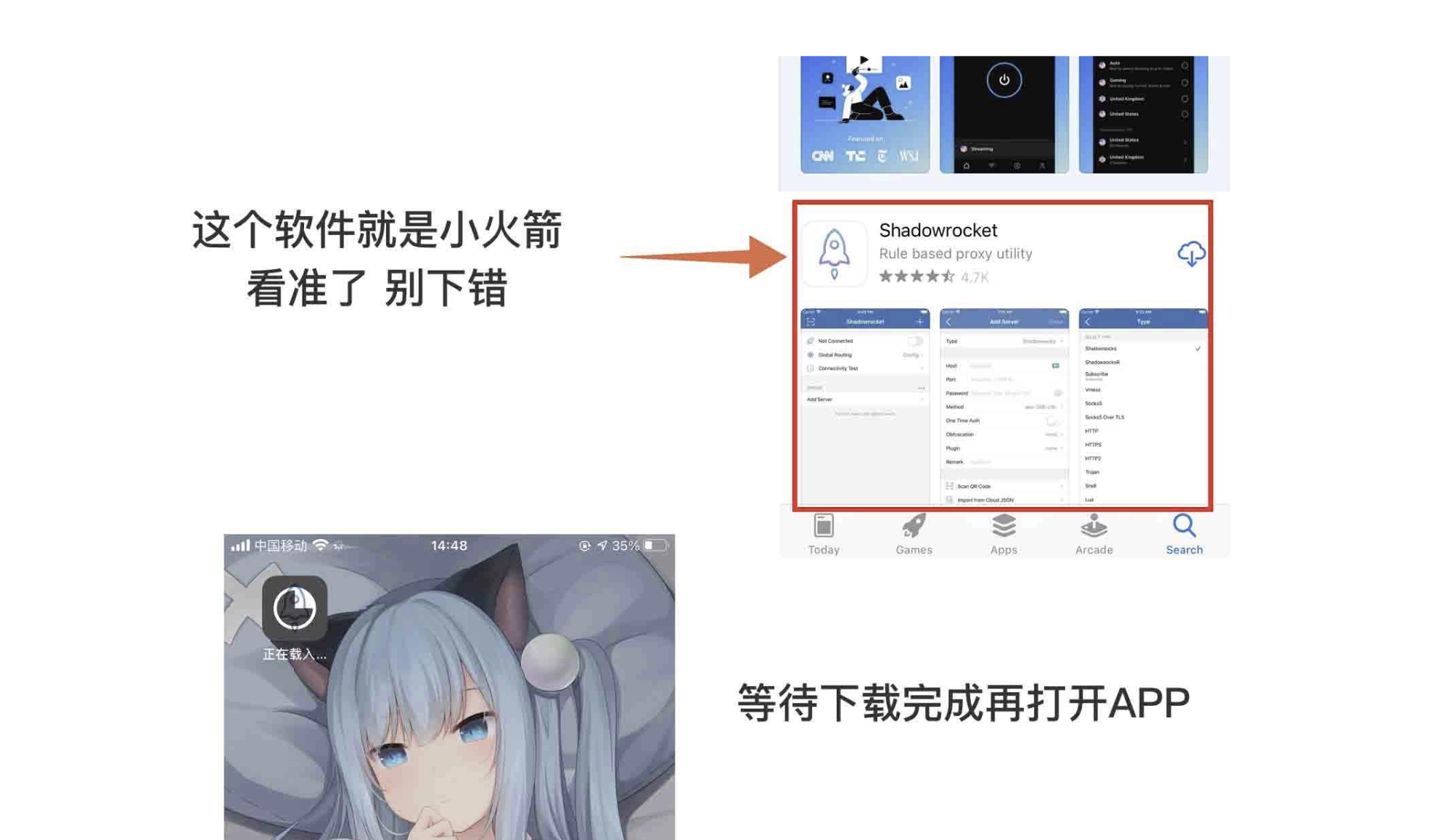 在商店搜索:Shadowrocket,图标是一个小火箭🚀,注意不要下错了!